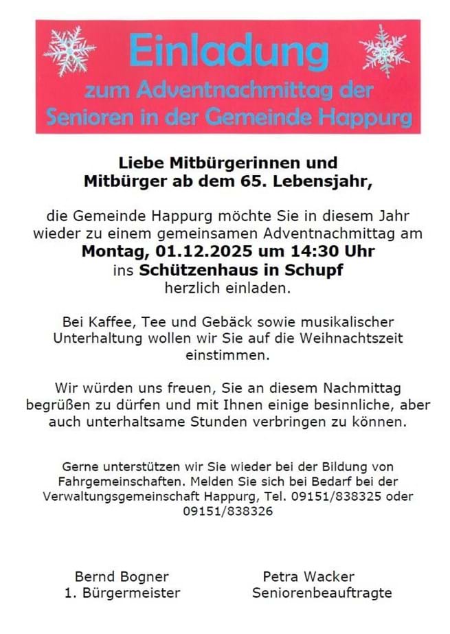 Einladung zum Seniorenadventnachmittag